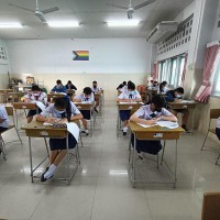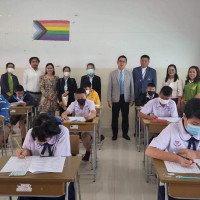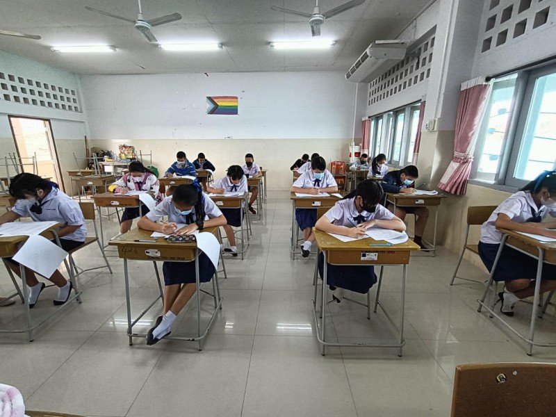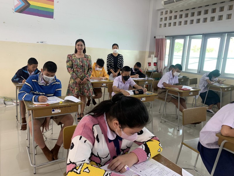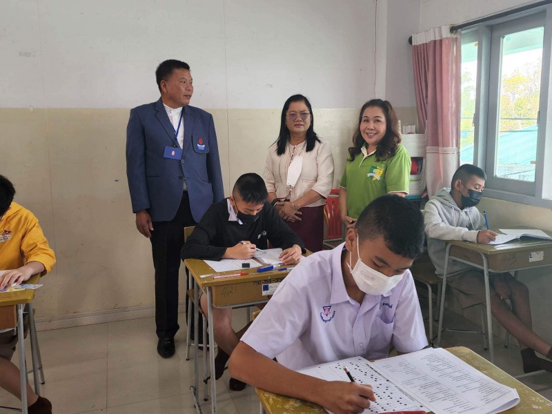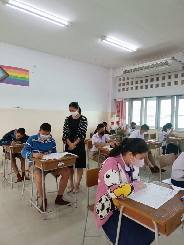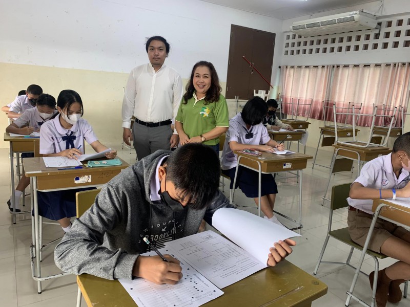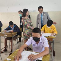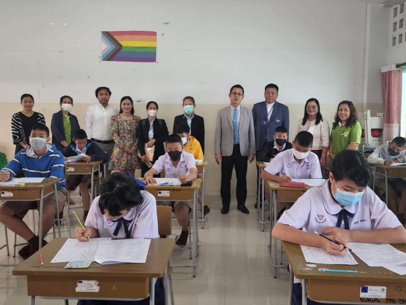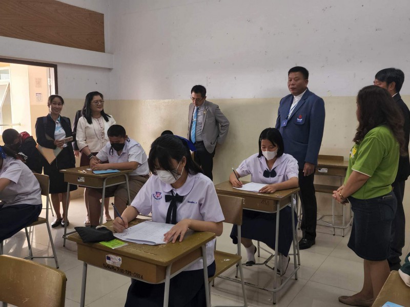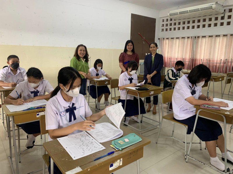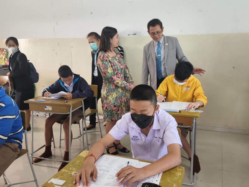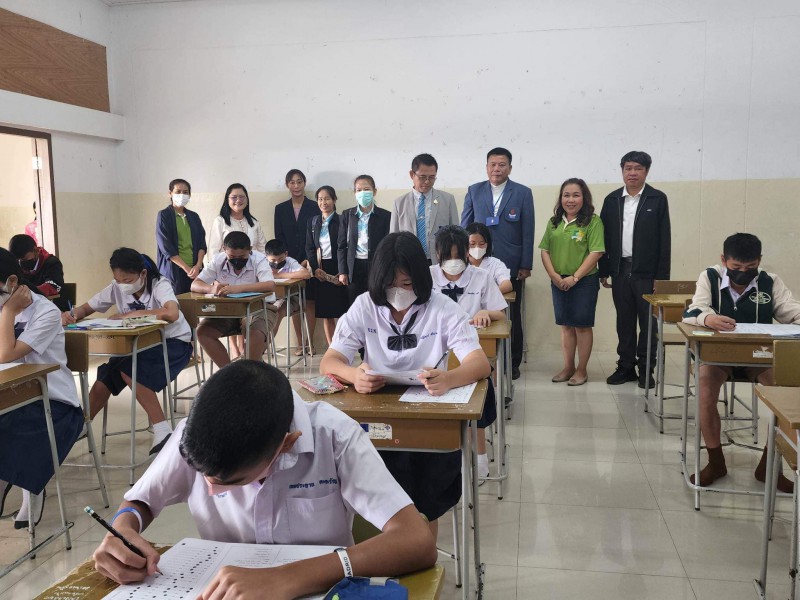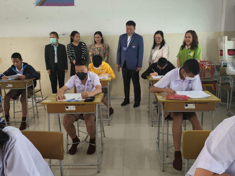 บรรยากาศการสอบคัดเลือกเข้าห้องเรียนพิเศษภาษาอังกฤษ (IEP) ระดับชั้นมัธยมศึกษาปีที่ 1 โดยท่านรองภคิน ลดาดกจิรานนท์ รอง ผอ เขตพื้นที่การศึกษามัธยมศึกษานครพนม และคณะ มาให้กำลังใจอย่างใกล้ชิด